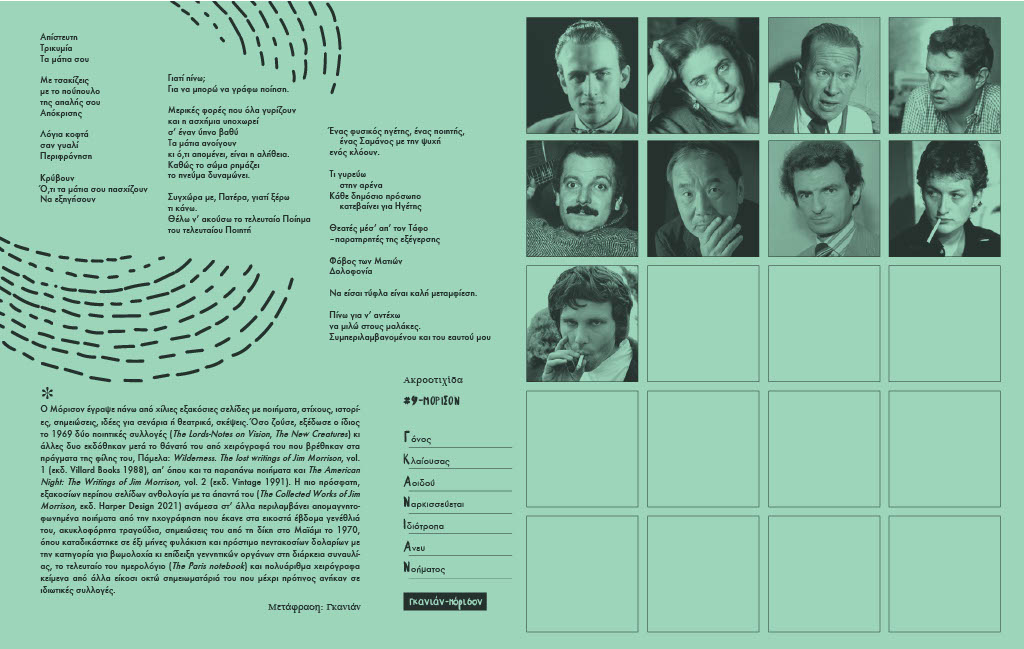 Ετερόκλητες παρέες, απρόσμενες συναντήσεις, εκλεκτικές συγγένειες· ένα πάρτυ έκπληξη στο χαρτί με καλεσμένους από το παρελθόν. Οικοδεσπότης, ο αναδυόμενος απ’ την κρυφή του ταυτότητα Βασίλης Κιμούλης, ο οποίος σε είκοσι τεύχη του street press «Η Πόλη Ζει» και στη στήλη του με τίτλο «γκανιάν / υπάρχει ο λόγ(γ)ος της πόλης πέρα από πατώματα και ταβάνια», επέλεξε είκοσι προσωπικότητες για να μας τις παρουσιάσει με τον δικό του –παράδοξο– τρόπο.
